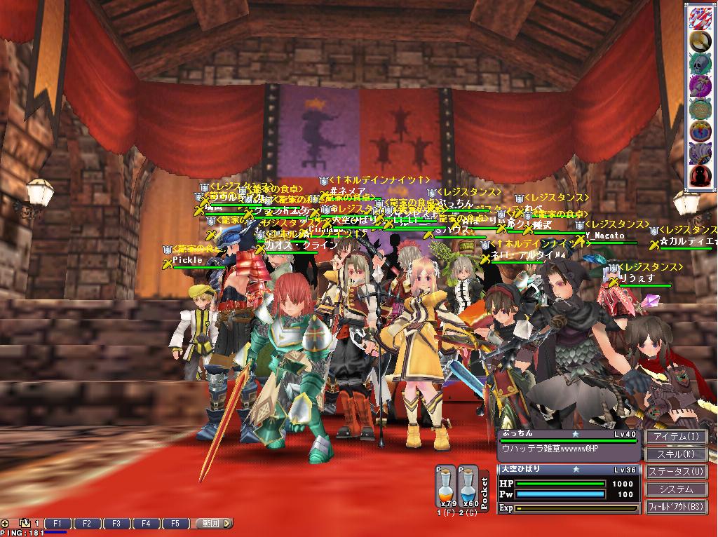 見よこのSSを!上位レジスタンスが独占! え?一人違う?ネロ?キノセイダロ この戦争はゲブ本土レイクパスでの一戦、 人数負けの状態で開始だったんだが、Kill勝ちで差をどんどん広げていくホル! だが死に戻るとオベが3本しか建ってない・・・あれ?キプクリ掘り0\(^o^)/ しかも14Lvのヲリが前線に2人もいるとか・・・・おわっとる・・・・裏方やろうぜ裏方・・・・裏方が普通に居れば確実に勝てたんだけどなぁ、14Lvヲリが前線とか論外でしょ・・・w ココまで酷いとは・・・・('A`) 低Lvは裏方と召喚!これ徹底させないとな、 ヲリは課金装備かオフィで固めてれば前線おkだぜ!とりあえずヲリで耐性低い奴は前線来ないほうがいいかもな、相当立ち回りが上手くないとすぐ死ねる('A`) 皿は大魔法覚えて詠唱2取れれば前線である程度戦えるかも、20Lvくらいかな スカは・・・30越えても裏方だろ?あ、俺はやらないけど^^ 2007.05.31 Thu 01:47:14